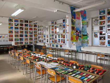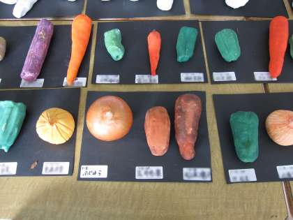 美術科作品の1年粘土作品(本物も混じっています)わかるかな?