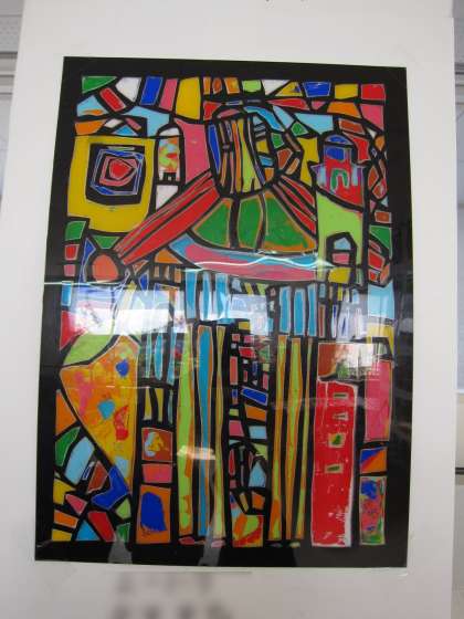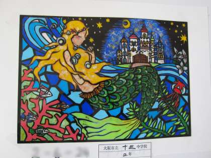 美術科の2年プッシュステンドの作品と