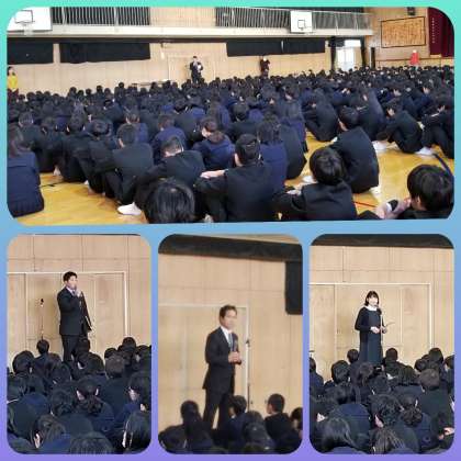 式では、校長の講話から始まり、生徒指導主事、保健室の教員から冬休みの安全生活や健康面についてお話がありました。
