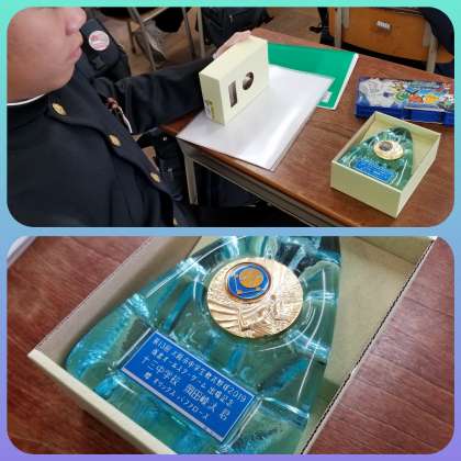 式に先だって野球部の大阪市中学校南北オールスターゲームに出場した三年生の松井くんと岡田くんの表彰伝達を行いました。おめでとうございます。