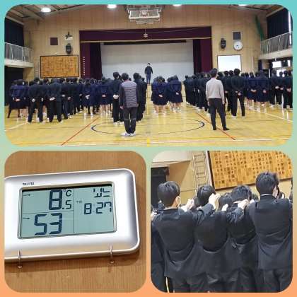 『気を付け』『前へならえ』、背筋を伸ばし、指先まで意識するよう、集会担当から厳しい言葉が飛びます。いい緊張感のなかで集会が行われました。