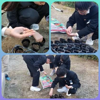 放課後の園芸部の活動では、レタスを種から育てます。小さな種は生徒の愛情で大きく栄養のある野菜へと成長します。