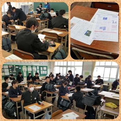 1年生の実力テストは、2月3日に延期なっております。月曜日は通常の授業です。忘れ物等にお気をつけください。