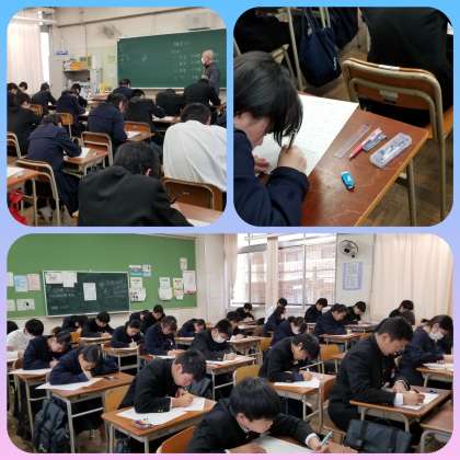 3年生の学年末テスト一日目の様子です。