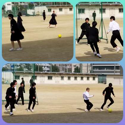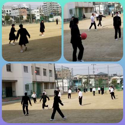 2月の昼休みの運動場ですが、詰襟を脱いで遊ぶ男子が目立っていました。