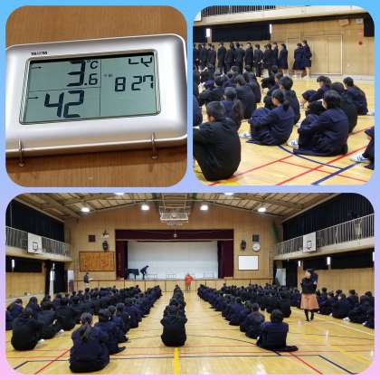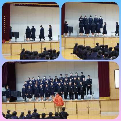 一年生では、合唱コンクールに向けて、舞台への移動、雛壇への乗り降り、行動等について練習しました。