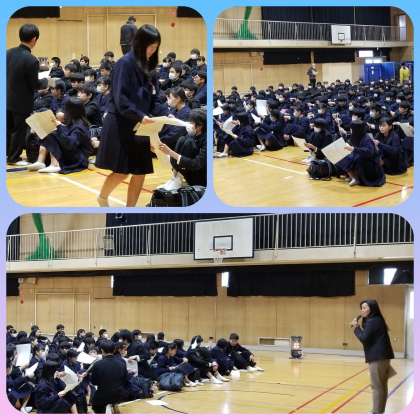 三年生は、休み明け2月10日(月)に私立高等学校の受験に臨みます。