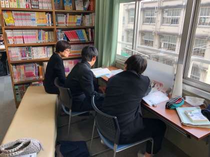 図書室には学習に対応したテキストも充実しています。