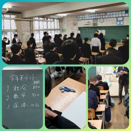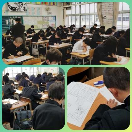 一年生教室、咳や花粉症状等も見られず、生徒みんな元気に受験しています。