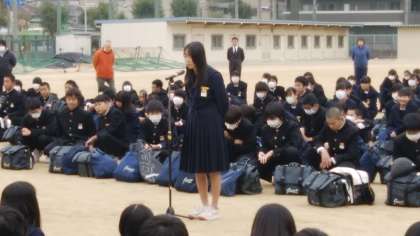 4月には「学校の顔」となる2年生、初めて後輩をむかえる1年生を代表して挨拶しました。