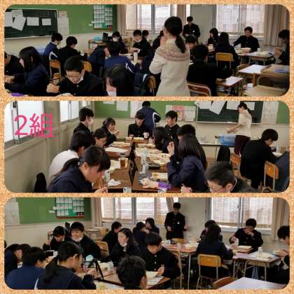 どこのクラスも最後の給食とあって、大声で『いただきます』と声を合わせ発声し、楽しい給食タイムを過ごしていました。