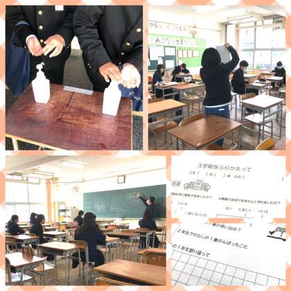 昨日と同じくしっかりアルコール殺菌をして、換気をした教室へ。間隔をあけて座ります。