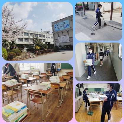 明日の入学式に向け、2.3年生の委員会生徒が教員と一緒に準備にあってくれました。