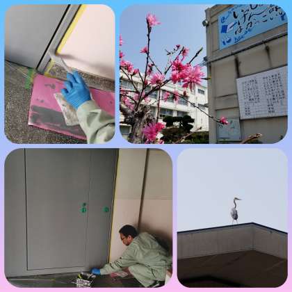 学校はこの間も、様々な業務が進められています。管理作業員は、生徒の不在時にしかできない塗装作業を行っていました。