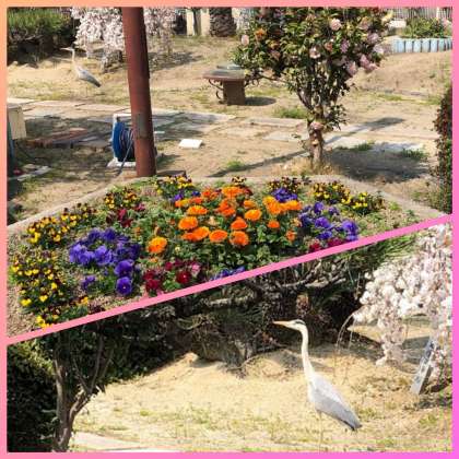穏やかな春の日差しに映える花と鷺の姿に、ほっこりとした気持ちにもなりますが、現状の日々感染者数の増加、そして生徒のいない学校、複雑な気持ちは隠せません。