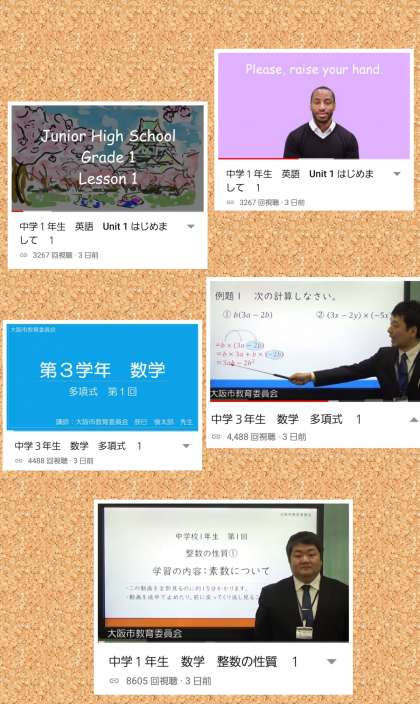 教育委員会からの動画配信について、全学年の数学と英語について、ご覧いただけるようなっています。下の写真が動画として流れます。