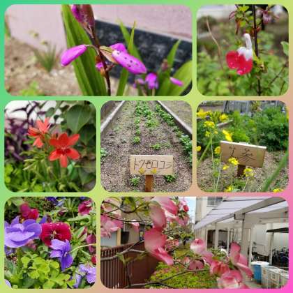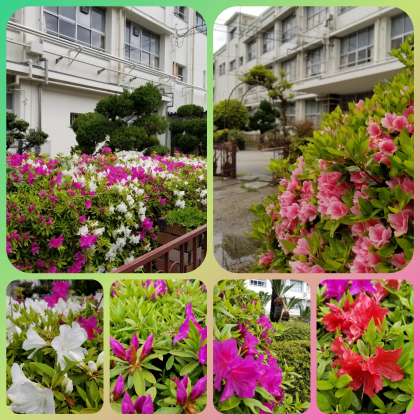 写真は十三中学校の中庭に咲く花です。桜のあとに咲く人気なハナミズキ。また、これからはつつじが見頃を迎えます。小さく目立たないところでは、イワナンテンが可愛く咲いていました。一年で最も花が咲くきれいな季節になっています。