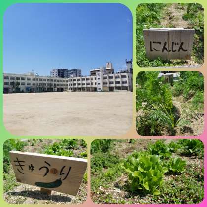 学校南館の菜園では、園芸部が種を蒔いた野菜が順調に成長しています。