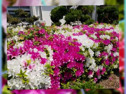 同じ土地に咲くツツジですが、十三中学校だけでも約4色あります。同じ場所で同じ色が集まっているところに違う色の花が?