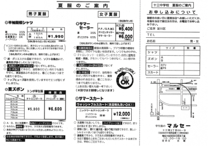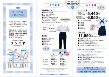 夏服購入についてのお知らせ