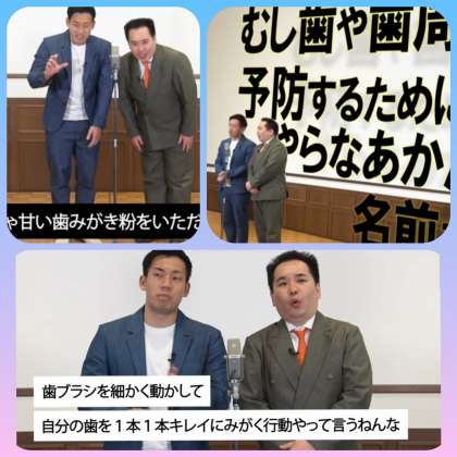 本動画は、漫才で、児童、生徒のむし歯、歯周病の予防につながる歯みがきの大切さをわかりやすく、楽しく伝える内容です。