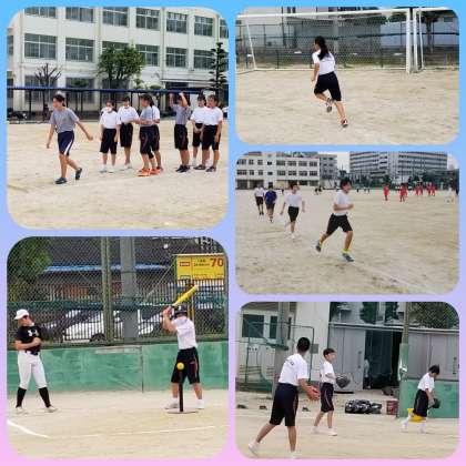 野球部では、ティバッティングによるゲーム形式で野球の楽しさを一年生に感じてもらっていました。