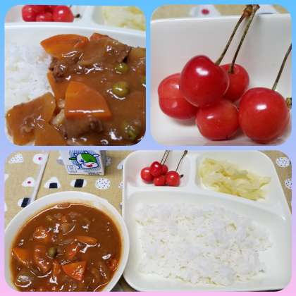 デザートはさくらんぼでした。赤くかわいい姿に笑みが溢れます。