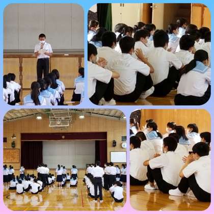 木曜日、3年生の学年集会では、委員長が中心となり進行を行っています。昨年までの経験もあり慣れたものです。