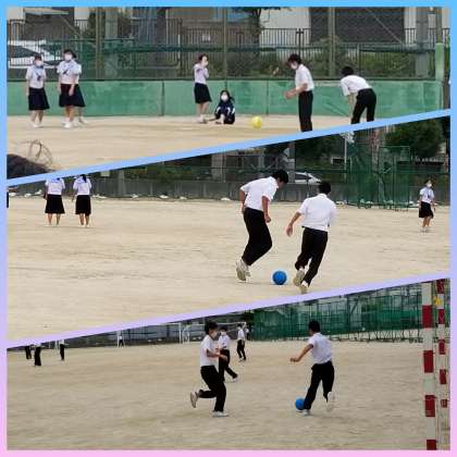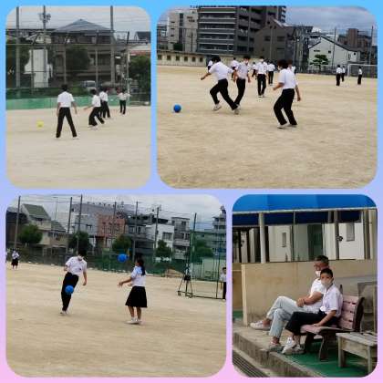 曇り空、梅雨の中休み、運動場にはたくさんの生徒が元気にボール遊びを満喫していました。