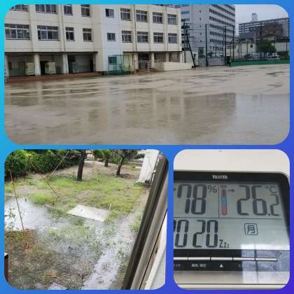 運動場も雨で覆われ尽くしています。