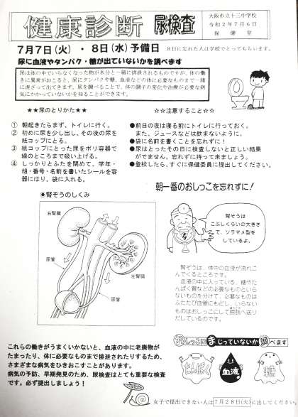 ※8日に忘れた場合は、登校後学校で取って検査に出すことになります。