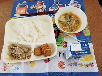 夏野菜で注目されるゴーヤ。近年レシピを増やしつつあるなかで、代表的な『ゴーヤチャンプル』が本日のメインです。たくさんの豚肉と一緒に炒め、苦みが全くなく美味しく頂けました。