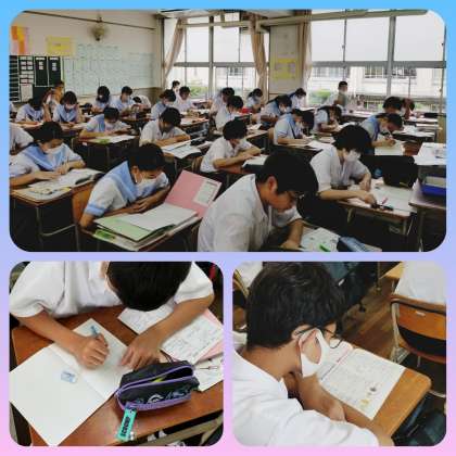 それぞれの学習方法で今日のテストに向けて集中します。鉛筆を動かし確認したり、本やプリントを見つめ確認したり、自分の方法で自習します。