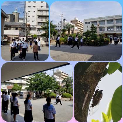 朝から日差しが厳しいですね。正門横、桜からたくさんの蝉が、あいさつする生徒より大きな声で鳴いています。