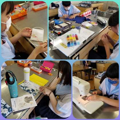 家庭科部でも、そのマスクにワンポイントの刺繍を施したり、新たに加工したりする生徒がいました。その発想の豊かさに驚きです。