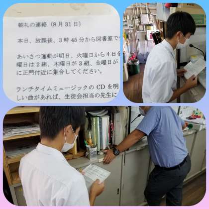 明日から週末まで『あいさつ運動』が始まります。8時15分までに正門付近に集合です。