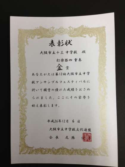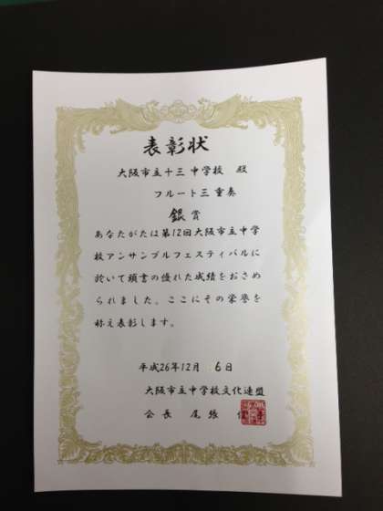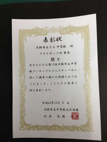 吹奏楽部がアンサンブルフェスティバル入賞です!