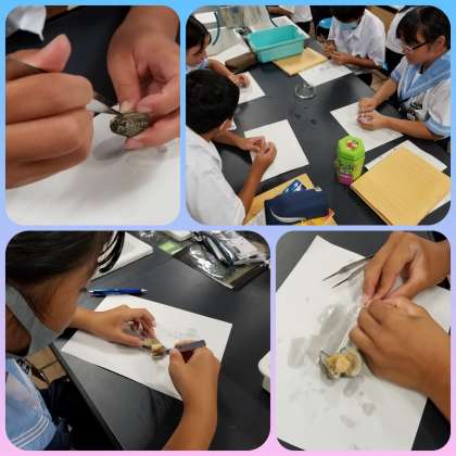 二年生理科では、アサリの解体を行っていました。