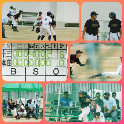 攻撃面では、チャンスでスクイズを決め先制し、続くツーアウト満塁の場面で7番バッターが走者一掃のタイムリーツーベースヒットを放ち突き放しました。その後も勝負どころで2点を追加し、6-0で本庄中学校に勝ち、BEST8進出です。