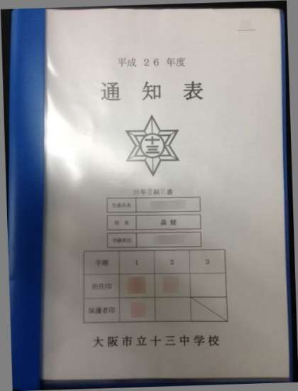 通知表が学校長から手渡され、