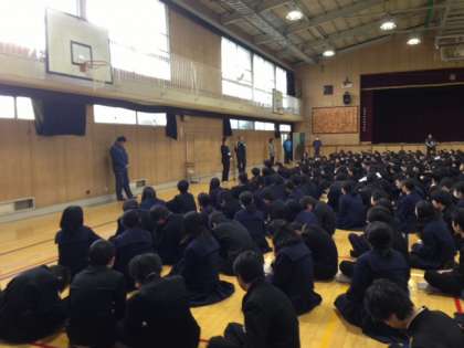2学期終業式を体育館で行いました。