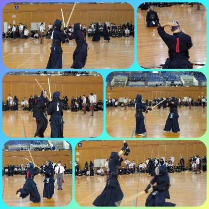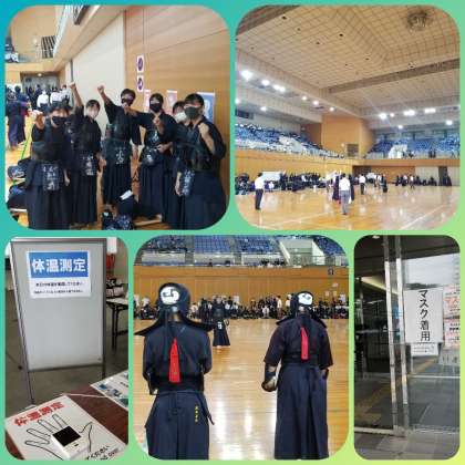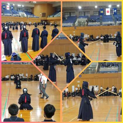 本校剣道部も団体戦に参加し、気合い十分に臨む剣士たち。打つべき機会を捉え、面・小手・胴の発声と共に打ち込む姿に仲間が拍手で参戦。