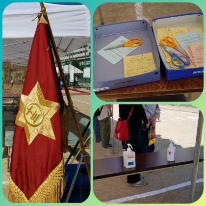 感染対策のため、マスクの着用を始め、手指消毒等を受付で行っております。受付用紙と保護者証をお持ちの上、ご入場ください。ご協力をお願いします。