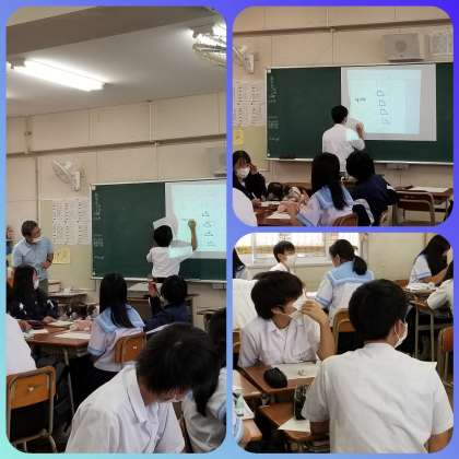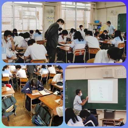 三年生の数学では研究授業を行いました。教育委員会の事業として、学力向上を図るために、数学専門の先生にご来校いただき指導を受けました。