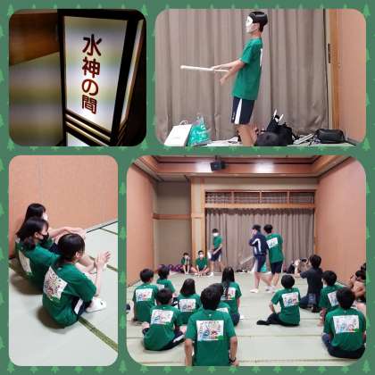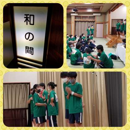 複数で行う『目隠しチャンバラ』で大はしゃぎする生徒たち。
