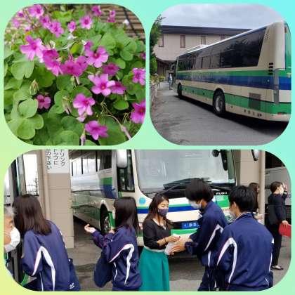 活動別にバスに乗車し、現地へ向かいます。