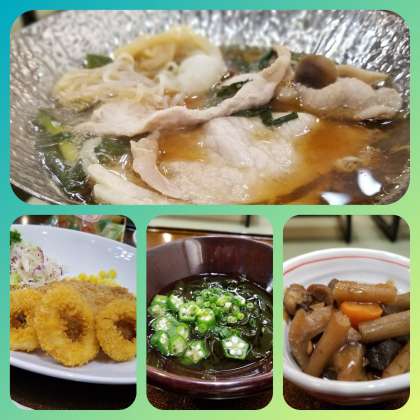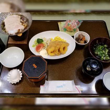 今夜の夕食は、豚すき鍋をメインに、イカリングや魚のフライ、根菜の煮物など、和洋食でした。