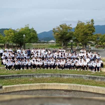 秋の気配がちらほら見られる飯田総合運動公園において、73期生全員で思い出の一枚を撮影しました。