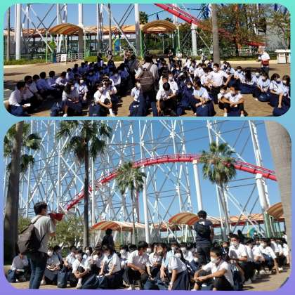上空を通るコースターに大興奮です。