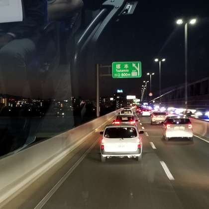 阪神高速、順調です。18時15分、淀川を越えました。もうすぐ塚本を降ります。